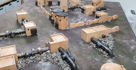 Badlands Bunkers 8pcs Set comes prepainted and assembled. Material resin. Straight out of the box ready to play.
